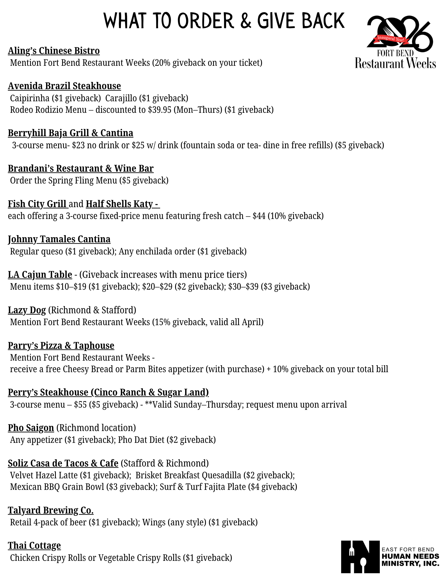 Inaugural Fort Bend Restaurant Weeks - -