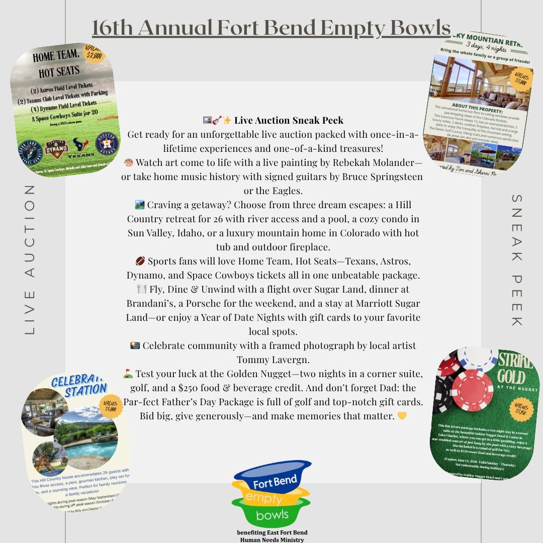 Your donations and purchases directly support our Food Pantry and Financial Assistance programs, helping neighbors in need across Fort Bend County.